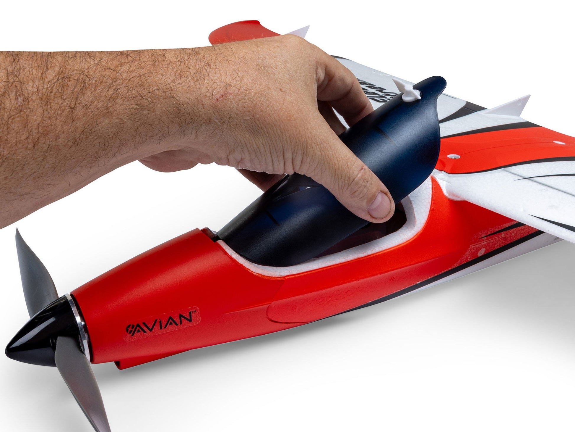 Speed and aerobatic enthusiasts will appreciate the locked-in precision of the four digital, metal-geared servos and ball-link equipped linkages. They make it possible to perform a wide range of sport to high-speed aerobatics, and the optional-use flaperons and spoilerons offer even more capabilities! The sleek airframe is composite reinforced throughout and is moulded in high-density EPO that delivers a strong and stiff airframe. Plus, it's factory-finished in a vibrant, high-contrast trim scheme for improved visibility and orientation. No glue is required for assembly, and a total of three screws install the stabilizer plus the one-piece wing that attaches and removes easily for convenient storage and transport. That means you can be ready to enjoy a fast-flying experience unlike any other in less time than it takes to charge a battery!