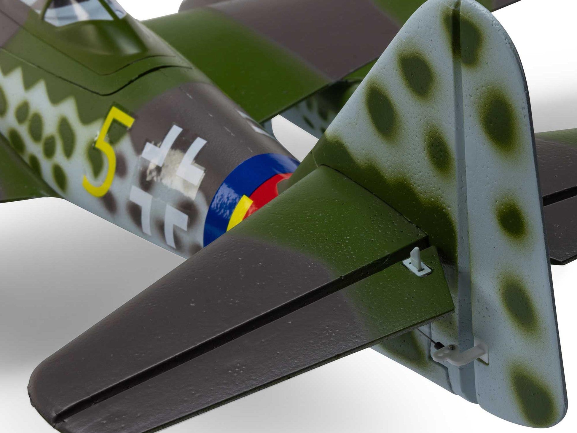 The fully moulded airframe features a scale outline with a variety of details including gun ports, a clear canopy with pilot figure, and other scale finishes you'd typically expect to find on larger models.