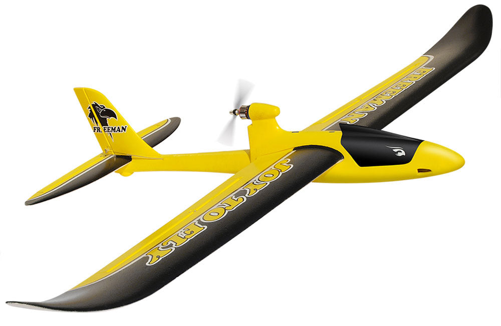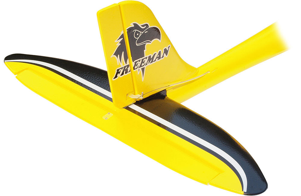 With a wingspan of nearly 1600mm and a bright colour scheme the Joysway Freeman V3 is very easy to see in the air - an important feature when you're learning to fly. Supplied ready to fly with a powerful, brushless pusher motor, 18A ESC and four 9g servos pre-installed the Freeman is quick to assemble as there is no glue required! Take off using a hand launch and land on its belly for simplicity allowing you to fly from a variety of locations. Control comes from ailerons, elevator, rudder and throttle so the Freeman is fully capable of capable of sports aerobatics and stunt style flying when required but its stable enough to learn to fly.