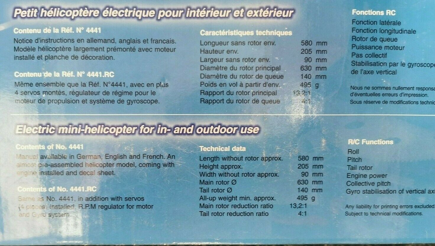 * RARE * Graupner Micro Star 400 RC Electric Helicopter Kit G4441Contents; Manual, almost fully assembled helicopter with pre-installed electric motor and decal sheet.